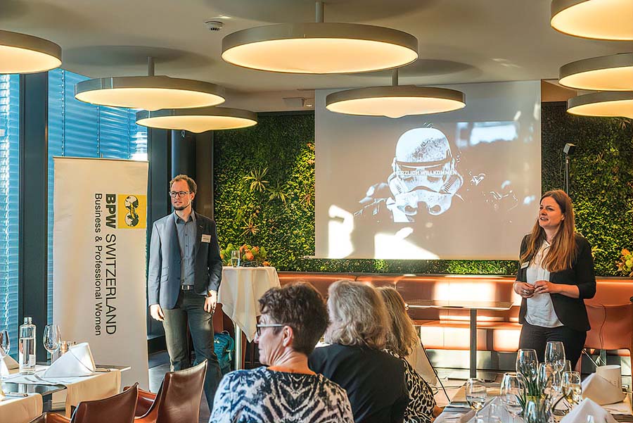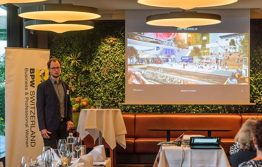 Matthias Knuser, Raumgleiter AG, nahm das Jahr 2050 als Anlass, um uns Zukunftsperspektiven wie Paketversand per Drohne, Nanotechnologie, Big Data oder digitale Produktionsketten aufzuzeigen. Viele der anwesenden Teilnehmerinnen reagierten mit Erstaunen. Dem wirkte Matthias Knuser entgegen, indem er die Fortschritte der Vergangenheit aufzeigte. So wurde 1982 das AutoCAD 1.0 und 1992 das erste SmartPhone auf den Markt gebracht. Nach einer umfassenden Zeitreise von 1980 bis 2015 durften die Teilnehmerinnen mittels Virtual Reality durch eine Wohnung laufen und deren Innenausbau und Inneneinrichtung verändern.